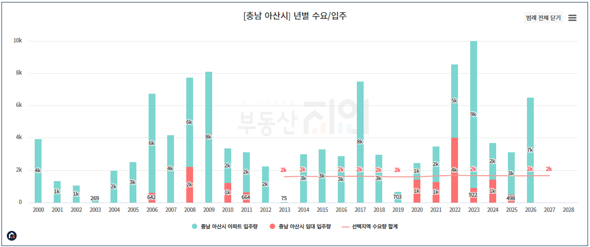 아산시 공급만 보면 계속 초과공급이 예정되어 있습니다.