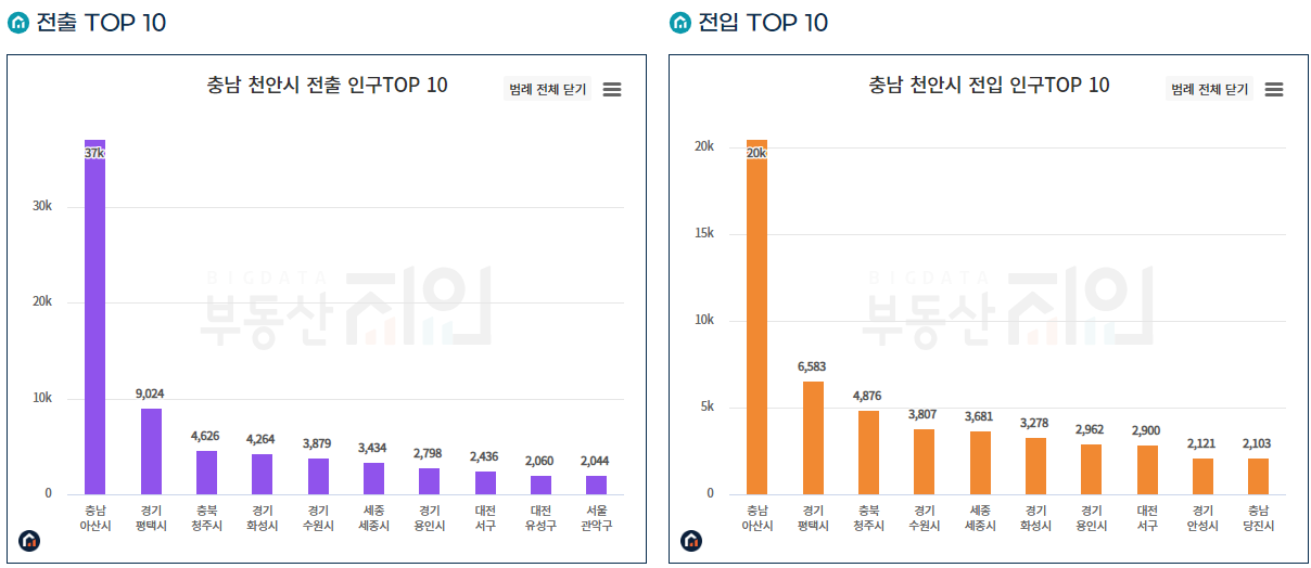순인구 증가/감소 측면에서 아산시를 중점으로 확인해야 합니다.
