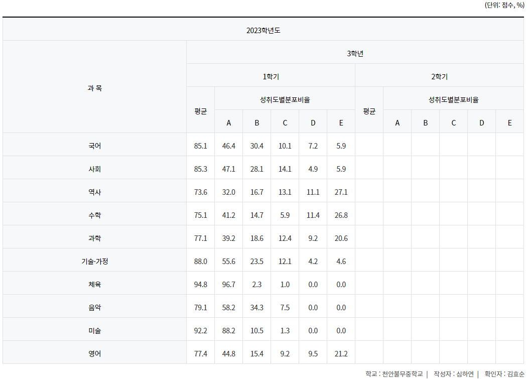 불당동 불무중학교 학업성취도율이 확인되지 않아 별도로 확인해 볼게요. 특목고 진학률이 4.5%입니다. 천안 내에서는 높은 편이죠. 학업성취도율은 아직 더 올라와야겠네요. 신축단지가 조성되는 곳 내 학교는 점점 학군지로 발전할 가능성이 높습니다.