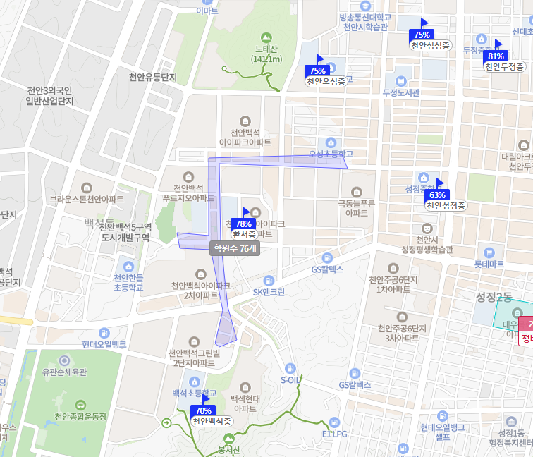 결론적으로 학군 수요가 있는 동네로는 천안시 서북구 불당동/백석동정도로 볼 수 있겠고, 선호 지역으로 생각할 수 있겠습니다.