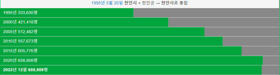 천안시 인구 추이(부동산 지인)